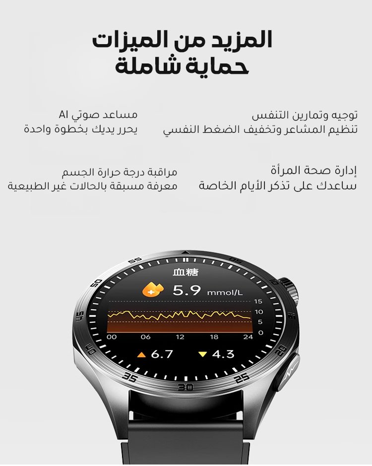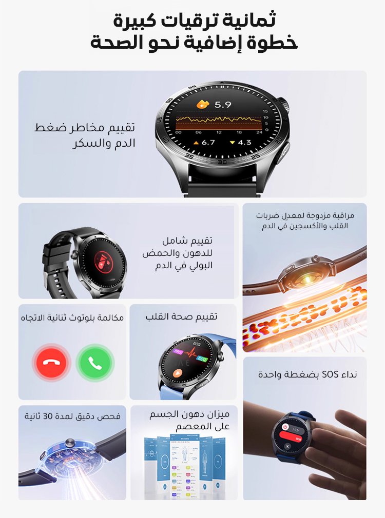 ساعة ذكية لتقييم مخاطر نسبة السكر وضغط الدم مع مكالمات بلوتوث
