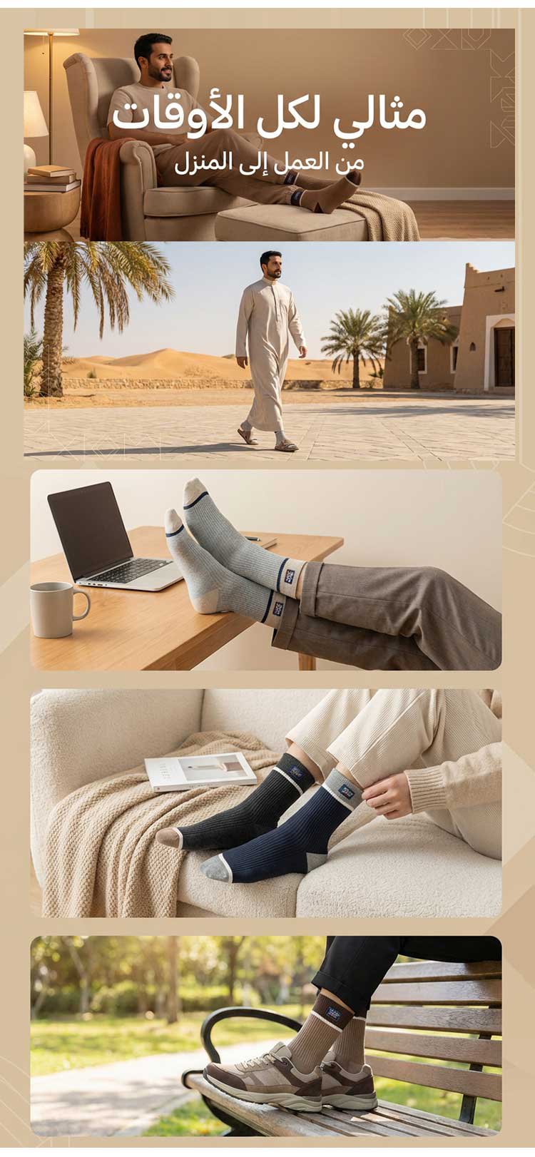جوارب رجالية متوسطة الطول بحافة مطاطية