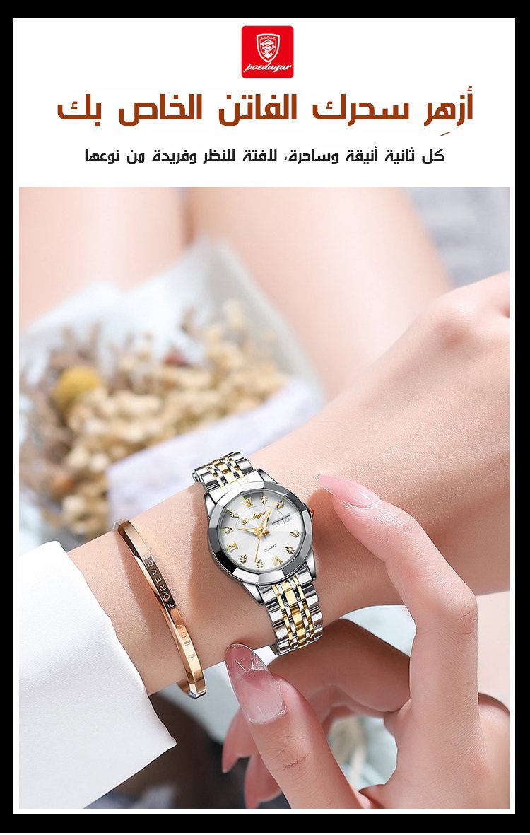 ساعة نسائية مقاومة للماء ومزودة بإضاءة ليلية من سويسرا