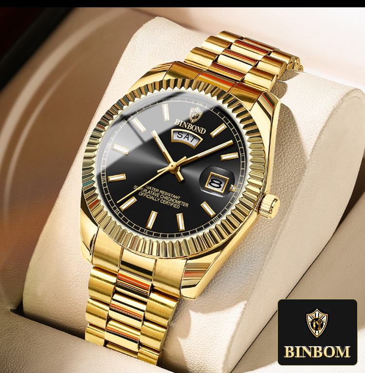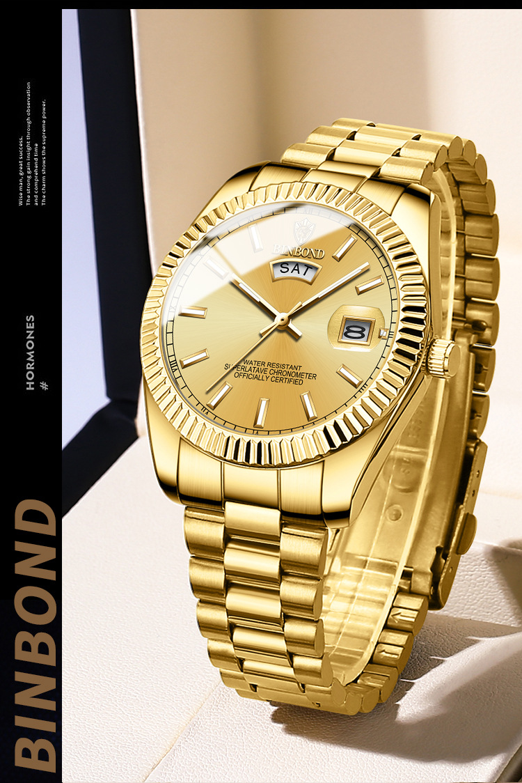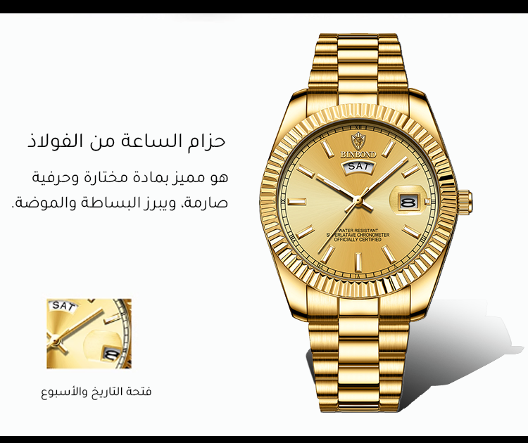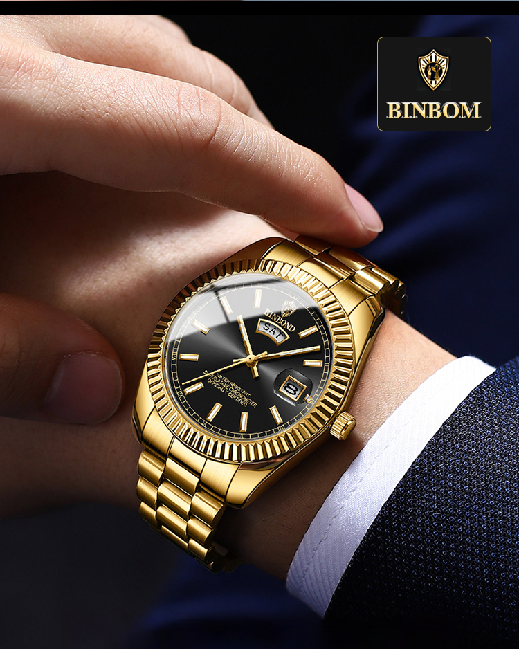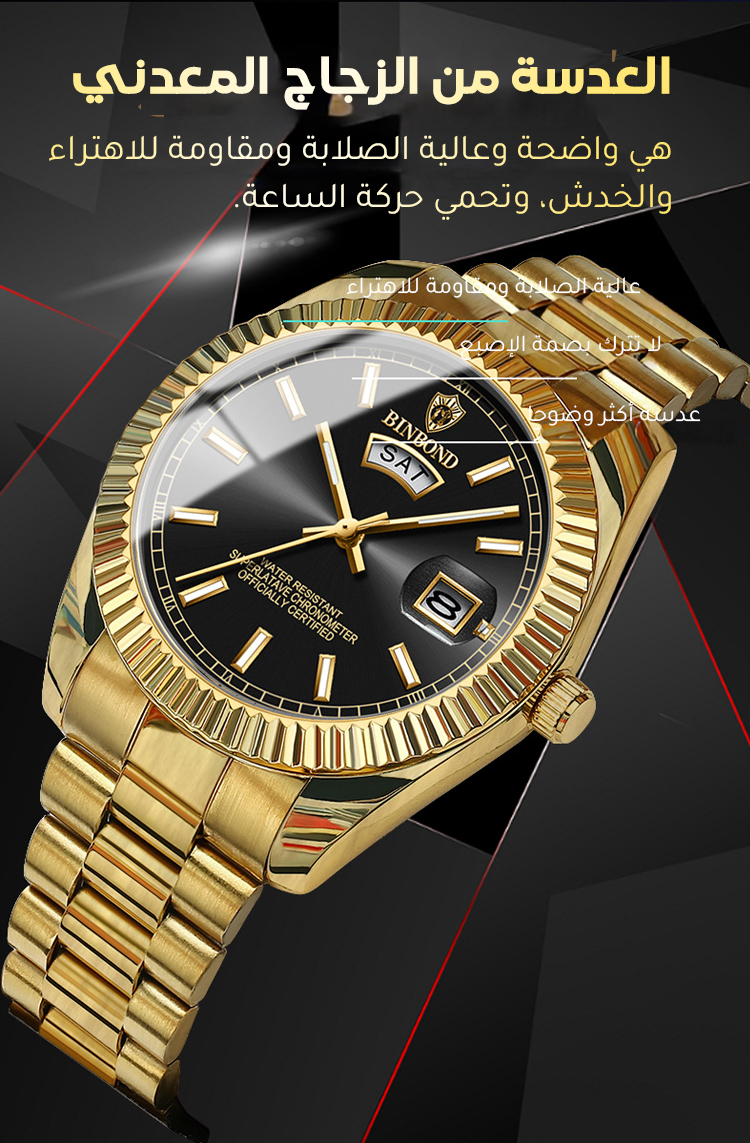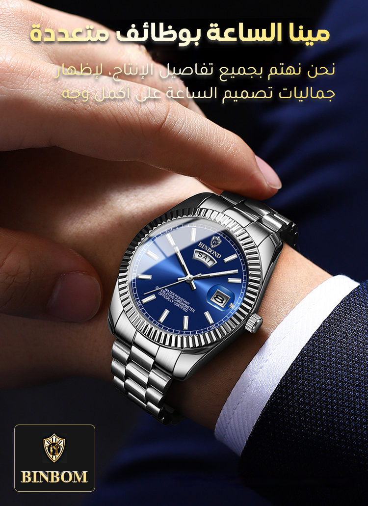 ساعة رجالية كلاسيكية مقاومة للماء ذات فتحة التاريخ والأسبوع