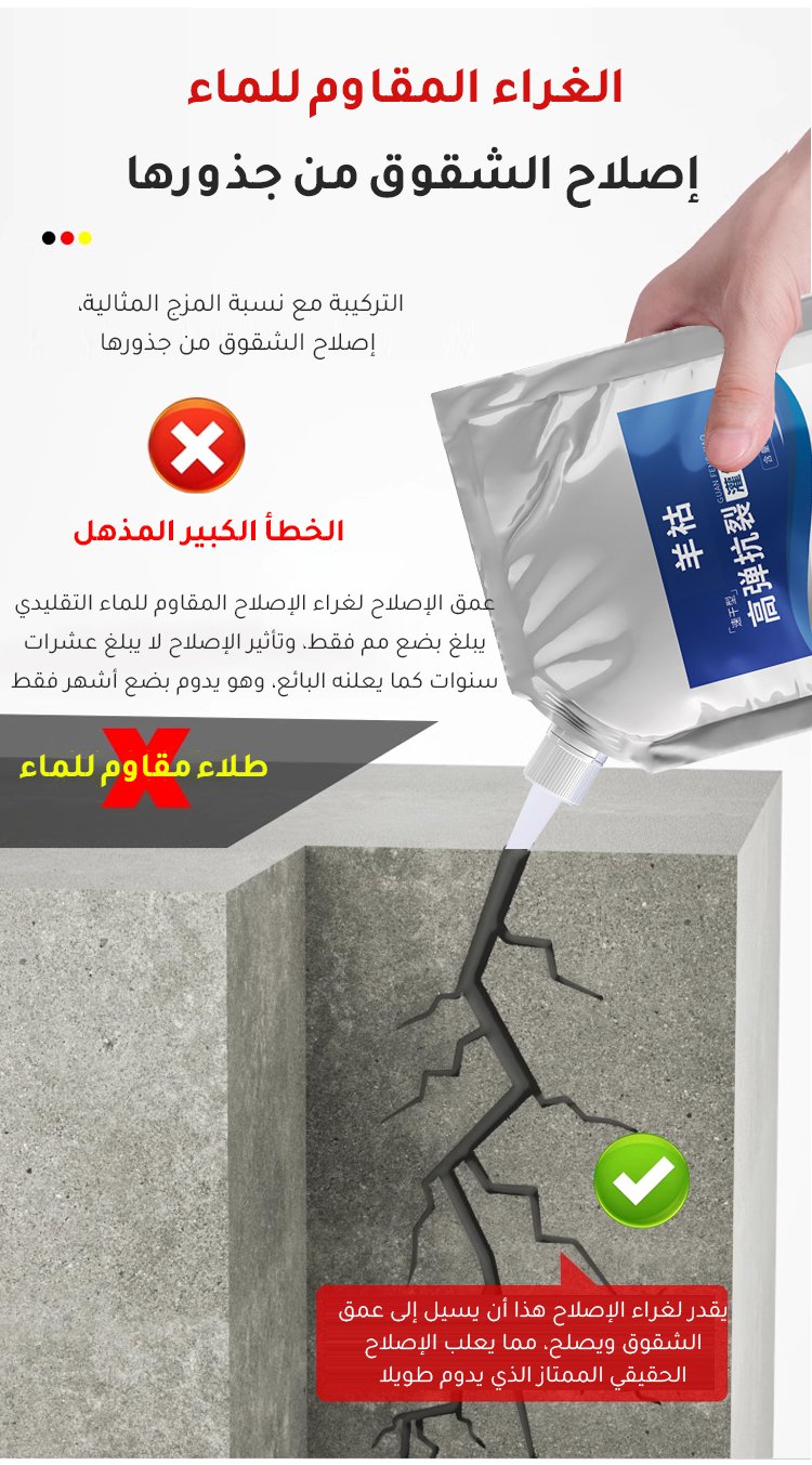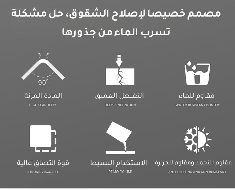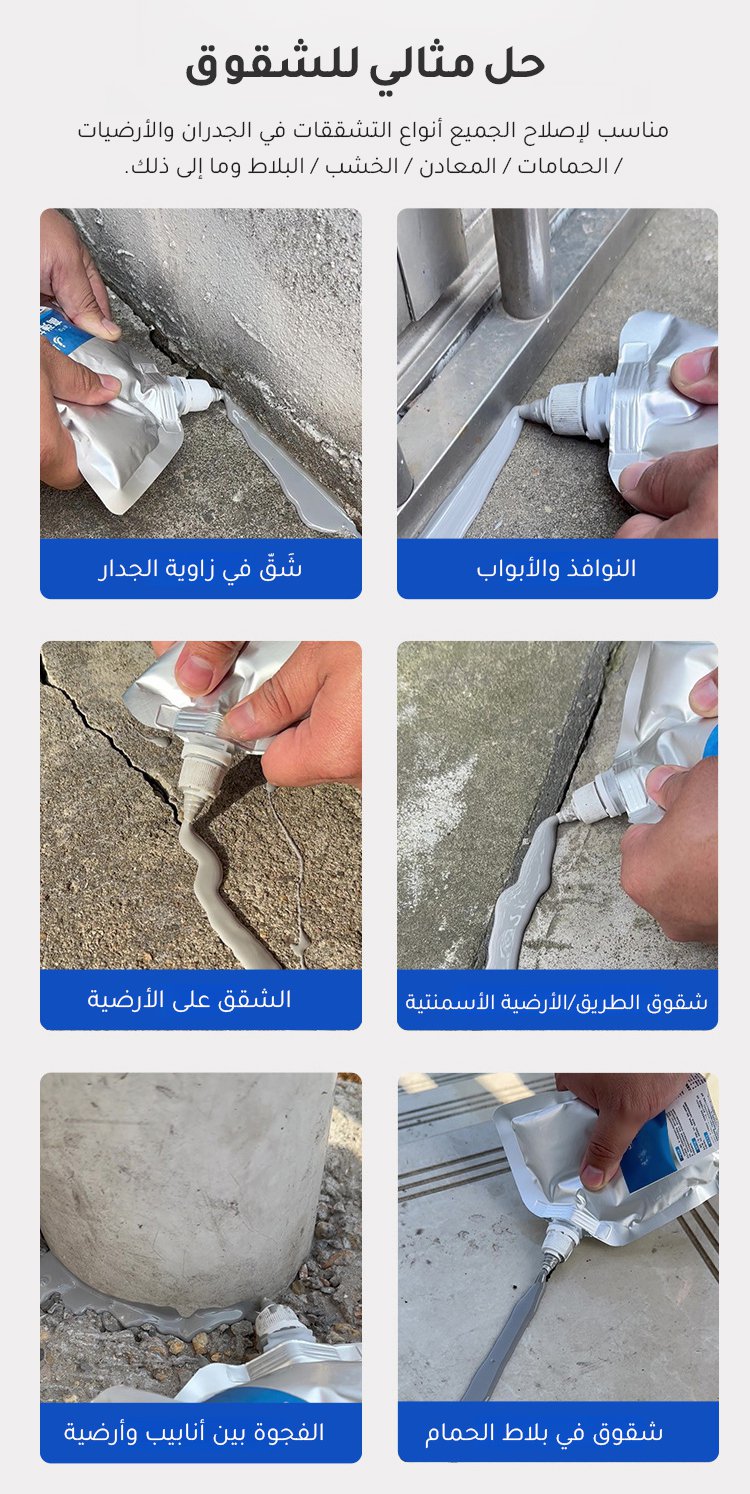املأ جميع الفجوات في 10 ثوانٍ فقط. لن يتشقق أو يتسرب الماء حتى بعد 20 عامًا. تستخدم بسهولة مذهلة ودون الحاجة لادوات معقدة.